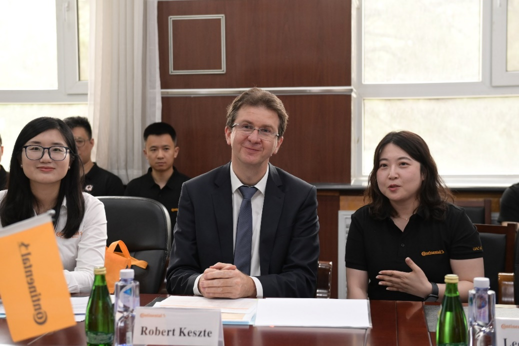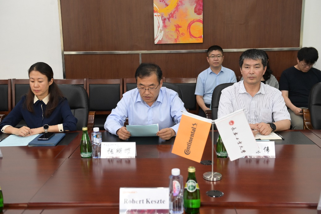 随后,李昌锡先生介绍了大陆汽车净月基地主要信息、工业产品、人才服务和社会保障体系;科斯特先生代表大陆汽车电子向公司表达了积极合作意愿,公司为该公司培养了大批汽车产业专业技术人员、高级工程师和产品经理,超过15%的大陆员工来自公司各个专业,感谢公司对大陆汽车发展所作的贡献;人力资源部总监陈韵女士也指出,公司与大陆汽车电子(长春)有限公司联合开展的“汽车产业智能装备制造定制班”,是大陆汽车在汽车人才培养领域的一个重要尝试,公司将矢志不渝地推进大陆汽车工程师在公司教学、实验和实践环节地支持力度,更好的为大陆汽车输送优质的汽车产业高级人才。