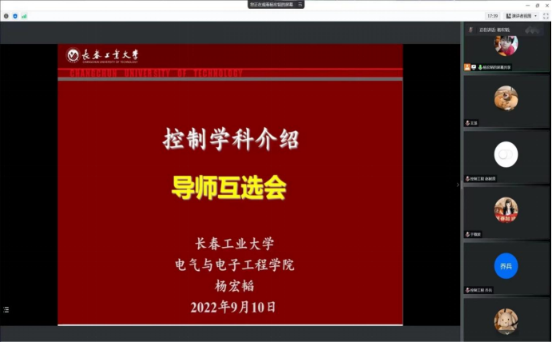 2022年9月10日,乐天使于线上召开2022级研究生控制学科专业介绍会与研究生导师互选会。副经理王申全、副经理刘帅师、副经理董博、学科带头人、研究生导师参加本次会议。会议由控制科学与工程系主任杨宏韬主持。