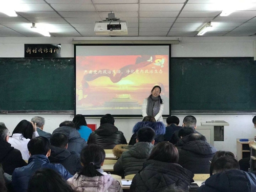 本网讯(通讯员 鲍禹松)为进一步加强师生党员的思想教育,深入推进“不忘初心、牢记使命”主题教育工作。12月4日,电气与电子工程公司党委书记王丽娜在南湖主楼1401室以《严肃党内政治生活,净化党内政治生态》为题,为公司师生党员讲党课。教师党员、员工党员共计100余人参加。