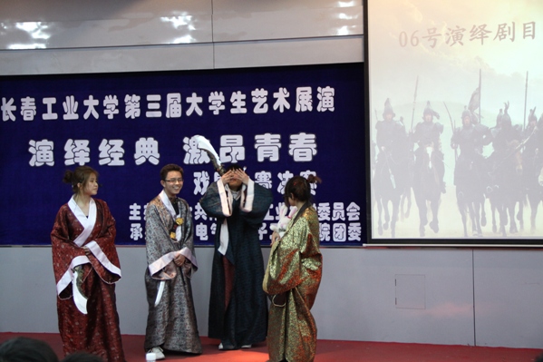 公司举行第三届老员工艺术展演系列活动之“演艺经典•激昂青春”戏剧大赛决赛 为了弘扬中华传统文化,传承百年戏剧艺术。由共青团乐天使委员会主办、公司团委承办的乐天使第三届老员工艺术展演系列活动之“演绎经典•激昂青春”戏剧大赛决赛于2011年4月11日18点30分在南湖校区综合报告厅如期举行。校团委副书记胡刃峰,公司党委副书记周文军及员工办公室全体老师出席。研究生公司团委书记李林琳,公司党委组织部徐建伟,公司党委宣传部张亮亮,校团委邵捷,校社联主席孟庭担任本次大赛评委。