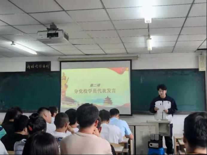 典礼第二项,由200301班潘成晟同学作为分党校学员代表发言,在发言中提到,作为新时代老员工,要努力学习党的相关理论知识,不断改正自身的缺点,积极向党组织靠拢。做到思想成熟,行动成熟,成为更优秀的自己。