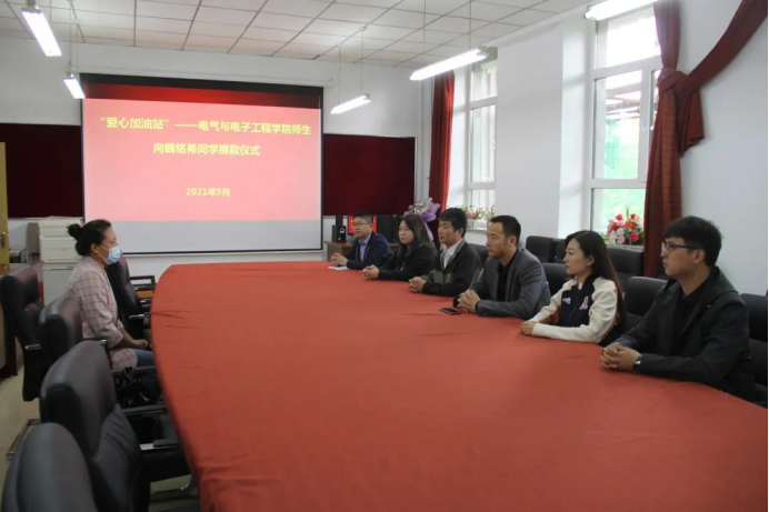 在今年暑假,公司19级同学魏铭希被诊断出原发性骨髓纤维化,病情较为严重,公司在得知魏铭希同学这一以特殊情况下,为解决经济上的难题,帮助他渡过难关,早日重返校园。9月23日,一场援助工大电气人捐款仪式顺利进行。
