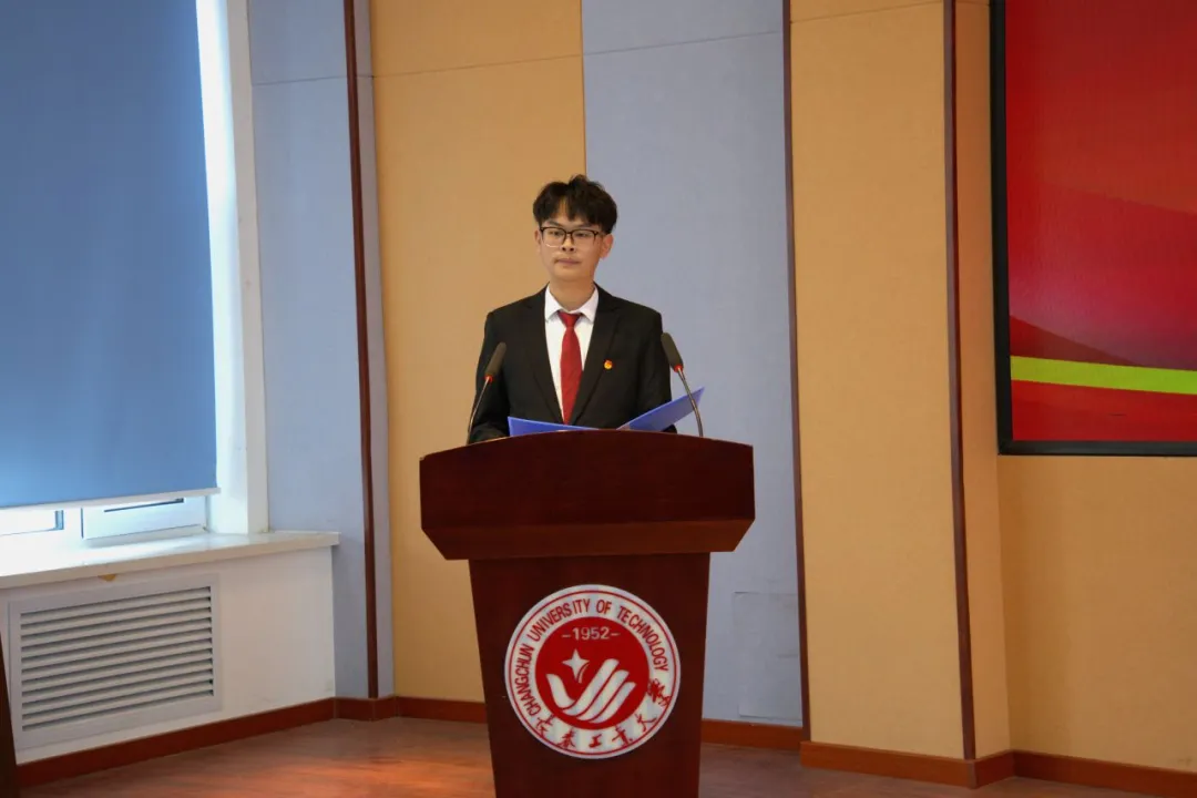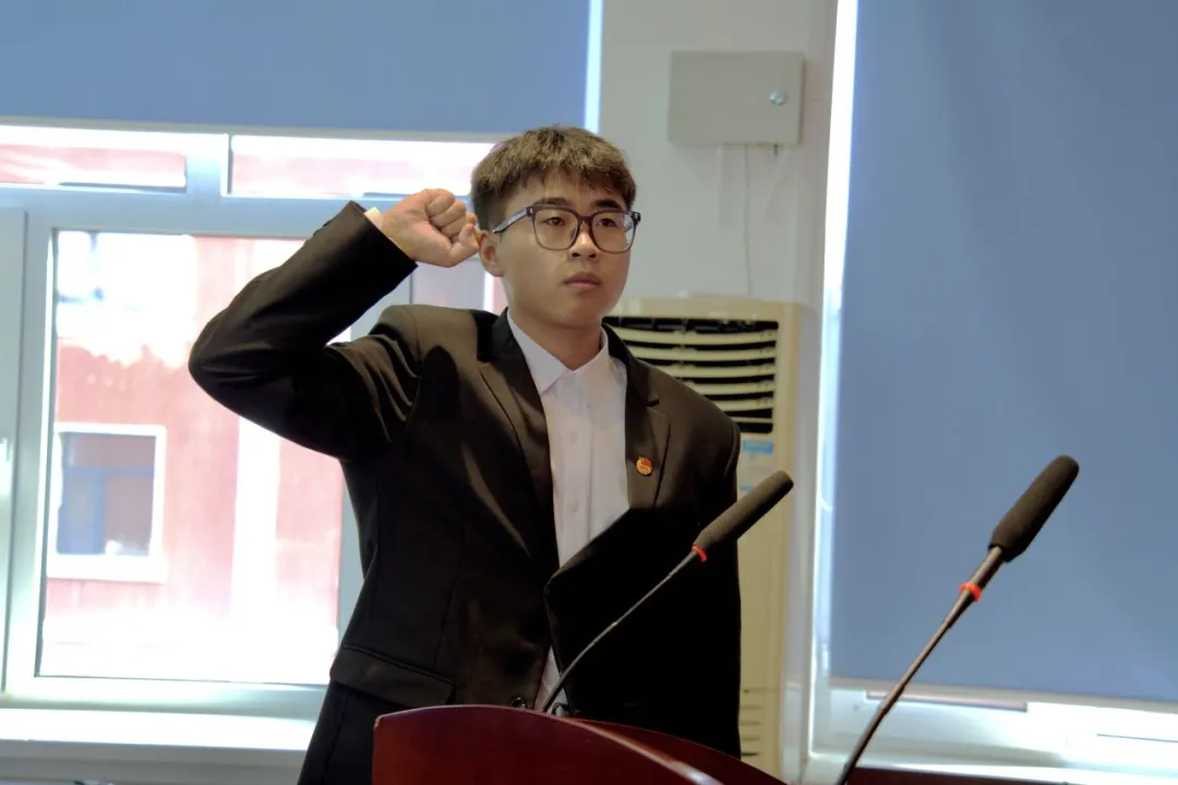 大会第六项:第二十三届员工会轮值主席蒋诚俊带领全体团学骨干宣誓