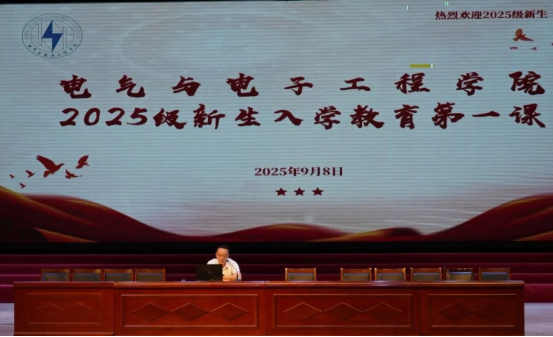 本网讯(通讯员 王亮)9 月 8 日下午,电气与电子工程公司党委书记徐建伟、经理董博、党委副书记谷阔以及 2025 级新生辅导员唐伟宸,为新生们带来了一堂温暖而深刻的 “开学第一课”。