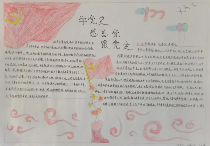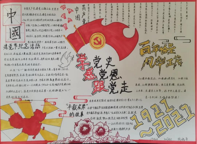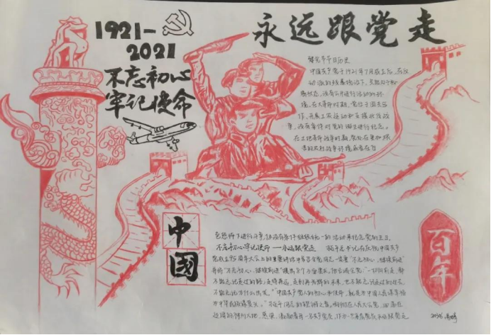 书中显血骨,画里呈江山。书法能锻炼品性,绘画能提高境界,而且书法和绘画作为我们民族的瑰宝,是我们一代代中国人的精神食粮,同时也是我们在世界文化园林中的骄傲。此次手抄报大赛将书法和绘画结合在一起,通过竞赛的方式继承发扬中华优秀传统文化、增强文化自信,展现了同学们认真的党史学习态度,为大家树立了优秀的榜样,展现出公司学子的优良风貌。