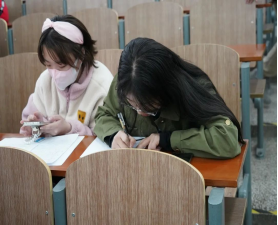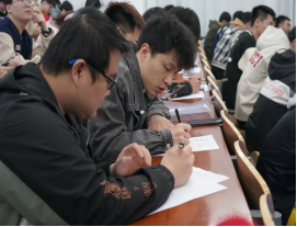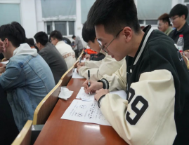 在长达两小时的比赛时间内,同学们全神贯注的写着试卷,教室里只有沙沙的写字声,人人都“埋头苦干”,有的咬着铅笔头冥思苦想,因为想不出答案而双眉紧缩;有的文思如泉,在草稿纸上飞快的计算,把一行又一行的公式整齐地写在试卷上;有的人脑门上沁出了一层紧张的汗珠,似乎忘掉了周围的一切,直到大功告成时才缓缓舒一口气;还有的同学抓耳挠腮,对平日里没认真学习懊悔不已,发誓在赛后课后认真复习,但并没有人放弃,抓住每分每秒努力思考答案。