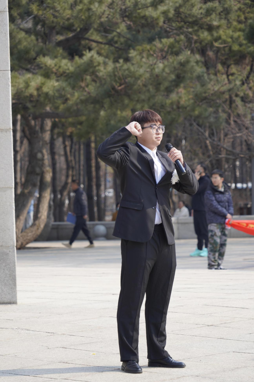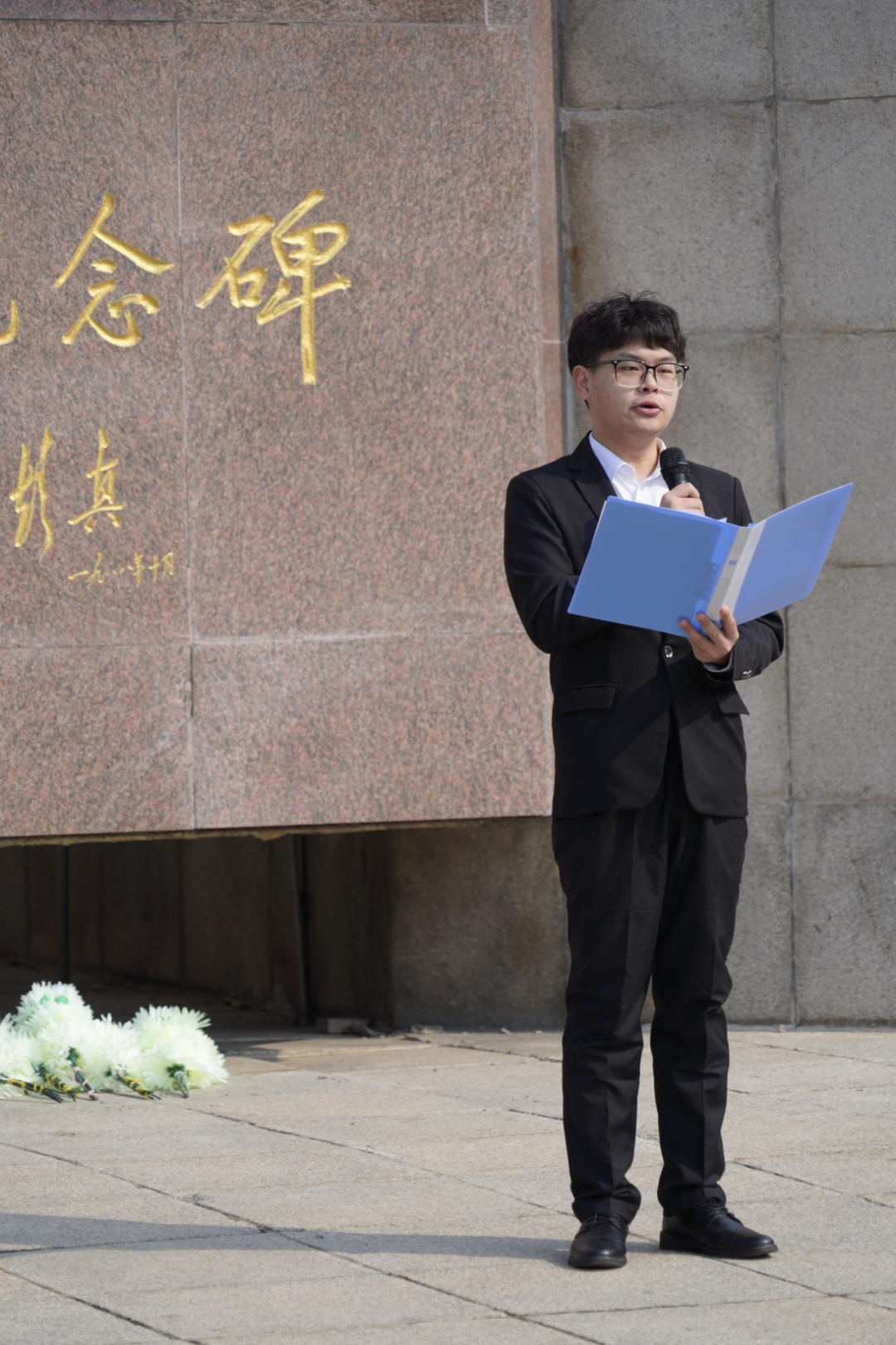 主持人褚立通发表了讲话,回顾了革命先烈为国家独立,民族解放事业所付出的巨大牺牲,强调正是他们的英勇无畏,才换里如今的和平盛世、国泰民安。号召在场的每一个人要以先烈为榜样,将爱国之情,报国之志转化为实际行动,立足本职砥砺前行,为实现中华民族的伟大复兴的中国梦贡献力量。