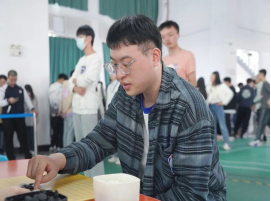 跳棋比赛的激烈程度也不亚于它们,比赛双方都不甘示弱,谨慎的移动着每一步棋,从他们之间氛围的紧张感足以看出棋盘的复杂。与对手在棋局里对格寻路、设卡、不惜一切代价的阻断与前进。看似棋者表面安静,实则掩盖不了无声杀伐的处心积虑与硝烟滚滚。在安静中思考,是为了更沉着有力的进击。