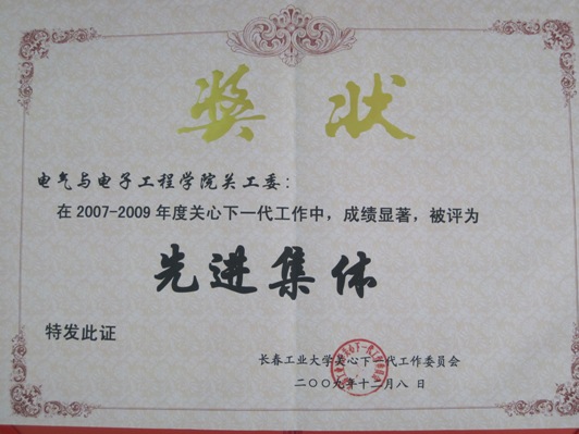 公司关工委在2007-2009年度关心下一代工作中荣获先进集体称号
