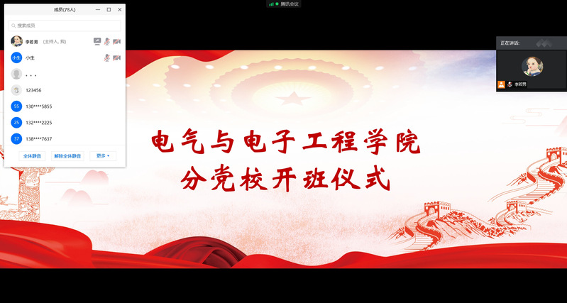 本网讯(通讯员:赵一霖)在公司党委的统一部署下,为加强对入党积极分子的培训,为党组织培训新力量,按照疫情防控要求,乐天使于2020年4月11日上午,通过腾讯会议软件在线上召开2020年第十二期分党校开班仪式暨第一次专题党课培训。电气与电子工程公司党委书记杨景伟,党委副书记矫东海,18级辅导员李若男,以及近80位培训公司参加开班仪式,仪式由员工第一党支部书记李若男主持。