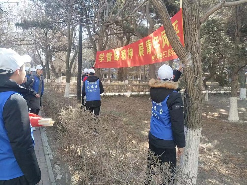 活动伊始,雨露志愿者协会会长胡浩根据参加活动人数及需要清理场地的范围进行了明确的分工,同时对一些细节问题进行了详细交代。参与人员明确目标后随即进入工作状态。清理纸屑、落叶、食品包装,进行垃圾分类收集,同时将条幅悬挂在校园的适宜的地方。同学们一个多小时的辛勤劳动,净化的是校园,传承和弘扬的是无私奉献、乐于助人、艰苦奋斗的雷锋精神。