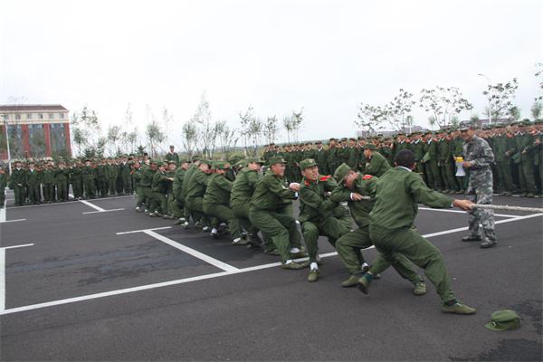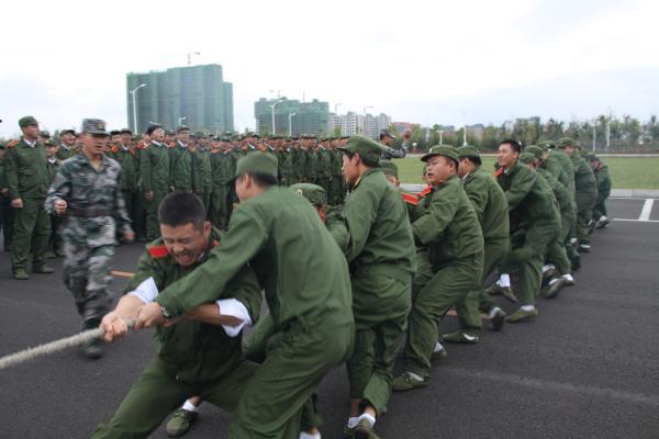 军训连长一声哨响,团体力量争霸赛进入正式比赛,比赛现场顿时热闹起来。各排精选出的队员们铆足了劲儿、涨红了脸,为彰显男儿本色而拼尽全力。现场啦啦队员一阵阵洪亮的加油呐喊声给参赛者带来了信心和力量,参赛队员随着口号声一起使劲儿,大家都在为一个目标全力以赴。最后,经过激烈的较量,最终一营三连二排获得的争霸赛冠军。随后冠军得主又与教官和辅导员联合队伍进行了友谊赛。