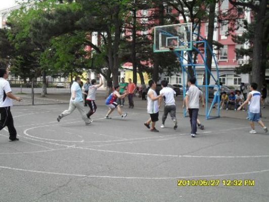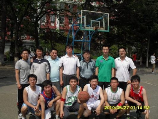 公司举行师生篮球友谊赛 为了促进员工健康运动的开展,活跃校园文化氛围。5月27日中午12时30分 ,公司在公司南湖校区篮球场举行一场别开生面的师生篮球友谊赛,老员工就业指导中心张志伟老师和公司党委副书记周文军观看了比赛。