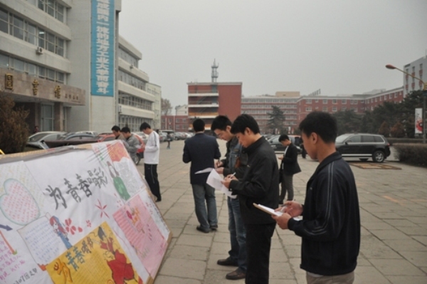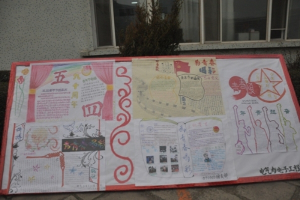 为青春喝彩 ——我院举行纪念五.四运动九十一周年手抄报比赛 2010年5月4日下午4点整,我院员工会宣传部组织09级员工举行了“为青春喝彩”纪念五.四运动九十一周年手抄报比赛。手抄报在公司老图书馆前展出,供广大同学评阅。白城师范公司机械电子工程系辅导员纪长亮,公司党委副书记周文军,团委书记矫东海,员工党支部书记郑洪斌、赵爽,员工工作办公室辅导员单洪朱,高博,朱博老师参加最终评比。