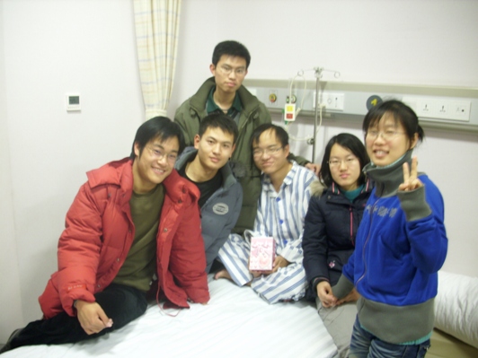 爱心协会六十多名成员还将自己的祝福和对卫亚军同学的鼓励写在彩纸上:“亚军学长,加油,虽然我们未曾相识,但我们衷心地希望你能坚强的战胜病魔”。“兄弟,坚强,我们和你在一起”。“祝你早日康复,回到我们的身边”。“相信阴霾在大家的爱心下总会被阳光冲散,不要担心,我们会和你肩并肩地在一起”……写满祝福的卡片被折成精美的千纸鹤,带着满满的祝福装入了礼品盒中。 27日下午,爱心志愿者协会成员们带着鼓励和慰问来到吉林大学第一临床医院住院部探望卫亚军同学。在收到爱心协会的礼品盒时,卫亚军很感动,他有些哽咽地说:“谢谢您们,我要等到发病时再打开”,大家知道,那一个个千纸鹤将带给他鼓励和希望,就好像大家和他在一起,所以他舍不得打开。在大家的劝慰下,卫亚军的话语渐渐多了起来,从公司的同学谈到在医院的生活,卫亚军恢复了以往爱说爱笑的样子,他们陪着卫亚军同学度过了一个愉快的下午。记者了解到,在回公司的路上,由于堵车,爱心协会的成员们在寒风中步行了半个多小时才乘上车,虽然寒风侵透了棉衣,但他们却笑笑说:“我们的内心是温暖的,因为我们是志愿者,我们乐于自己的工作。”涓涓爱心在寒冷的冬季汇聚成浓浓的情谊,温暖了正在抗击病魔的卫亚军。