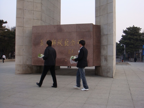 | 清明节里祭忠魂,先烈豪气耀昆仑,但使前辈英灵在,化作细雨润乾坤。4月3日早5点,公司关工委常务副主任董占武老师、公司党总支副书记周文军老师、员工党支部的全体党员及“红旗社”理论学习社团的全体成员,来到南湖公园的长春解放纪念碑前,举行“缅怀革命先烈,继承革命遗志”清明节扫墓活动,同时举行党员宣誓仪式。 活动由公司团委副书记、红旗社社长姜萌萌同学主持,在庄严的纪念碑前,全体老师、同学默哀三分钟,员工代表向革命先烈敬献鲜花,以寄托对革命先烈的哀悼之情。随后在员工党支部书记郑洪斌老师的带领下,全体党员举起右手,面向党旗庄严的宣誓,一句句铿锵的誓言,书写着共和国可歌可泣的篇章,鼓舞着青年学子对共产主义执著的追求。宣誓结束后郭晋男代表员工党员发言,表示要努力学习党的先进理论,弘扬革命精神,加强自身思想道德建设,努力学习科学文化知识,以最优异的成绩向新中国成立60周年献礼。公司关工委常务副主任董占武老师在最后总结中指出,忆往昔,革命先烈是我们世世代代中华儿女的光荣和自豪,是永远值得我们崇敬和爱戴的楷模!看今朝,我们继承革命先烈的遗志,在公司党委的正确领导下,高举邓小平理论和“三个代表”重要思想伟大旗帜,落实好科学发展观,大力弘扬“爱岗敬业、求实创新”的工大精神,始终保持与时俱进、奋发有为的精神状态。望未来,时刻铭记自己肩负的历史使命,勇于接过社会主义现代化建设的接力棒,求真务实,积极进取,为全面建设小康社会做出应有的贡献!