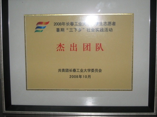 【图片新闻】公司荣获2008年乐天使老员工志愿者暑期“三下乡“社会实践活动杰出团队