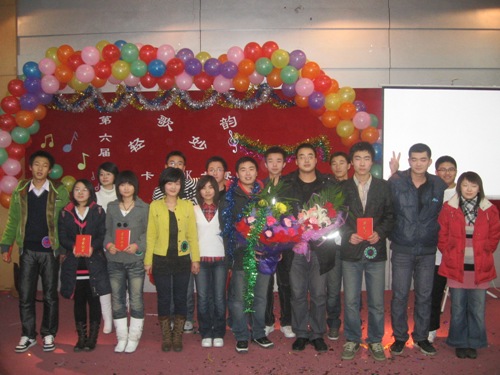 在富有浪漫情调的动画中十名参赛选手纷纷亮相。紧接着,参赛选手们分别演唱了《爱不爱我》、《你》、《听海》、《是非题》等歌曲。其间,董丰嘉、朱成龙、金多和张书瑜同学带来了舞蹈《DON’T PUSH》也为比赛的选手减轻了稍许的紧张。特别是《晚秋》、《倒带》等歌曲别有风味,博得了同学们的热烈掌声。为了活跃现场气氛,电气艺术团同学为观众表演小品《八戒闹天宫》,热情和幽默的演技引来了同学们的阵阵喝彩。比赛现场场面异常的热烈,各个亲友团更是使出浑身解数为选手们呐喊助威,最终080307班何亮以浑厚的嗓音,精湛的舞台技艺征服了现场的评委并获得第六届“轻歌妙韵”卡拉OK大赛一等奖。