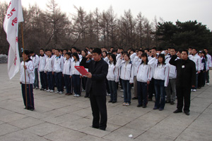鲜花献英烈,誓词慰忠魂。4月5日早5点30分,乐天使员工党支部的全体党员和“红旗社”理论学习社团的全体成员,来到南湖公园内的长春解放纪念碑前,举行“祭奠革命先烈,重温入党誓词”清明节扫墓活动。 活动由乐天使员工会主席李想同学主持。李想同学首先向同学们介绍了长春解放纪念碑的由来,并带领大家向纪念碑默哀三分钟。默哀过后,员工支部的全体党员在公司辅导员任佰鹏老师的带领下,举起右手,面向党旗,庄严地重温了入党誓词。宣誓结束后,全体同学依次走向碑前献花,表达了对先烈的缅怀和敬仰之情。05级党员董博同学代表发言,他表示一定要继承发扬革命先烈遗志,努力学好科学文化知识,争做一名优秀的社会主义事业接班人。活动最后,乐天使员工党支部书记郑洪斌老师讲话,他指出,今天我们举行的“祭奠革命先烈,重温入党誓词”活动意义深远、作用重大,它必将激励我们每个党员牢记宗旨、勤奋学习,永葆共产党员的先进性。必将激励每位同学刻苦努力、奋发图强,为祖国的繁荣昌盛贡献自己的力量。郑老师最后希望全体同学继承先烈遗志、牢记党的教导,立足现在、开创未来,创造更加辉煌灿烂的明天! 撰稿人:李林琳 审核人:周文军 图片提供:任佰鹏 |