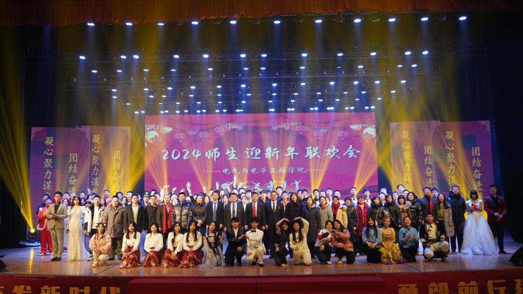 表彰大会后,公司师生欢聚一堂,载歌载舞庆祝新年的到来。公司领导班子成员带来的诗朗诵《大美吉林,强省有我》点燃了全场爱国强省的热潮;公司全体教师表演的《年轻的朋友来相会》、《如愿》、《真心英雄+走在大路上+没有共产党就没有新中国》等曲目表达了老师们对高等教育事业的热爱以及对广大青年员工的美好祝福和殷切希望;舞蹈《鼓韵龙腾》、《当嘟嘟嘟遇上吗喽》、《美丽新疆欢迎您》、《东北风》,小品《时间都去哪了》、《你好,在吗》,歌曲《有我》、《云山》、《猪猪侠+逆态度+仰望星空+最初的梦想》、《飞云之下》、《少年中国说》等节目,充分表达了电气学子昂首阔步新征程、为实现中华民族伟大复兴中国梦而不懈奋斗的坚定信念和豪迈情怀。